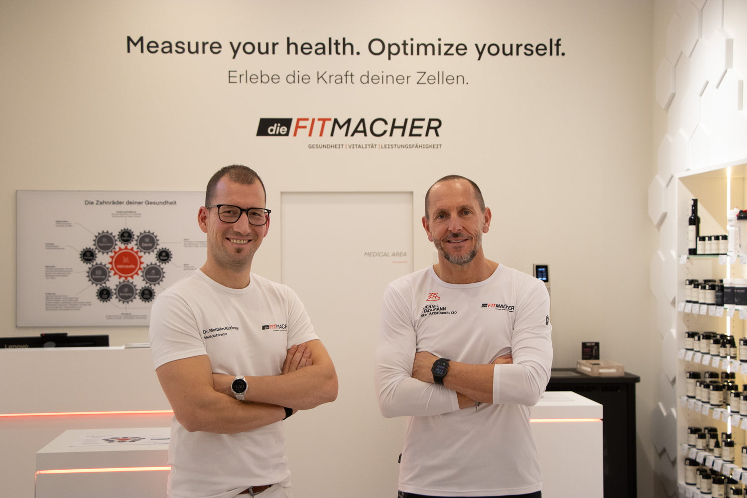 2019 haben sich Michael Stadlmann und Dr. Matthias Kirchmayr bei einem zufälligen Aufeinandertreffen im Medicenter Linz kennen gelernt. Schnell stand für beide fest, dass sie dieselbe Vision von einem gesunden und langen Leben verfolgen und sie sich als Partner perfekt ergänzen: Dr. Kirchmayr bringt die medizinische Expertise mit und Michael Stadlmann das unternehmerische Know-how. Bis zur Gründung von dieFITMACHER dauerte es nicht lange: Ende 2019, nur 1 Monat nach dem Kennenlernen, wurde das Unternehmen im Medicenter an der Unteren Donaulände gegründet.